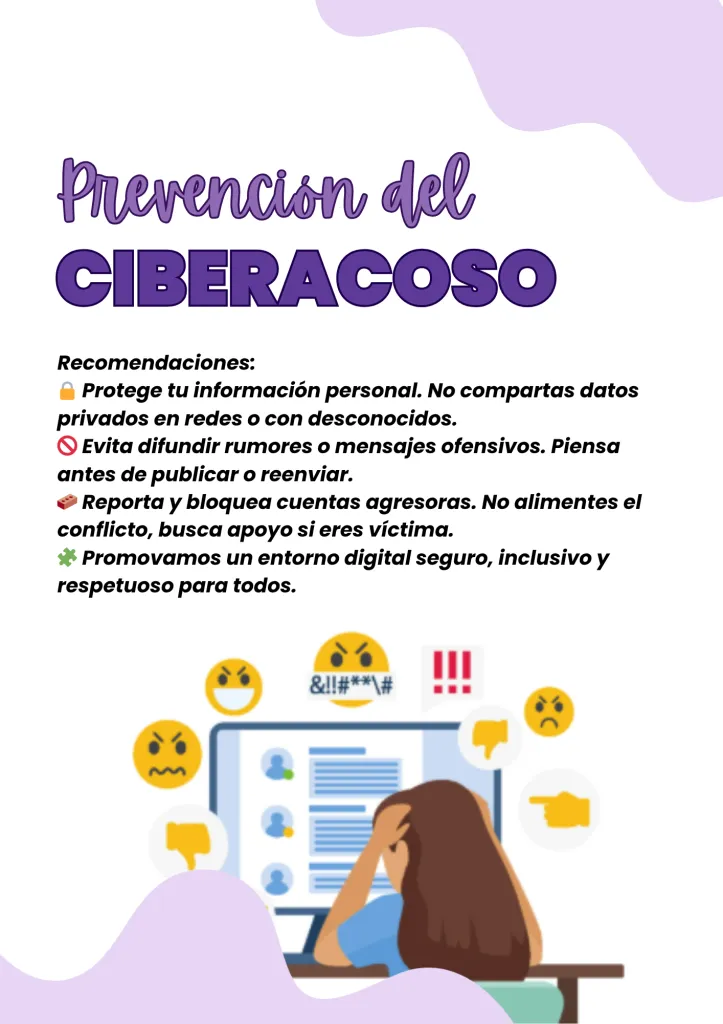 El ciberacoso es una forma de violencia digital que afecta la dignidad, la integridad y el bienestar emocional de las personas. Se manifiesta mediante insultos, amenazas, difusión de información falsa o la exposición de contenido sin consentimiento.Prevenirlo requiere compromiso, respeto y responsabilidad en el entorno virtual.
